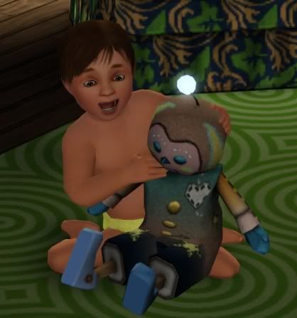 Even though he never got a doll of his own, Marlon would always find one that someone left around and played with it when no one was looking. Pepper and Romeo weren't happy at all when they found out [their dolls are usually left lying around when they're asleep, any other time and it's impossible to find them], but Alice was willing to share hers, since she didn't play with it anymore.